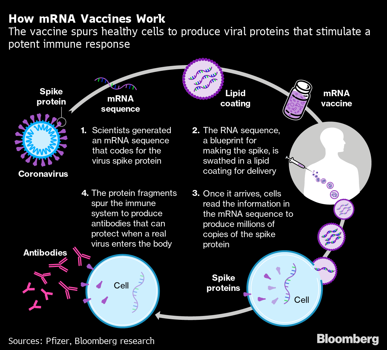 The shots from Moderna Inc. and a partnership of Pfizer Inc. and BioNTech SE use genetic material called messenger RNA to effectively transform the body’s own cells into vaccine factories. The approach had never been used outside of clinical experiments, and just how well it worked against the coronavirus stunned even some of its most enthusiastic backers.